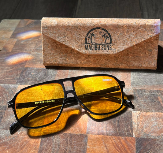 MALIBU SUNS® Polarized Driving Suns, UV protection, scratch resistant with wooden frame.